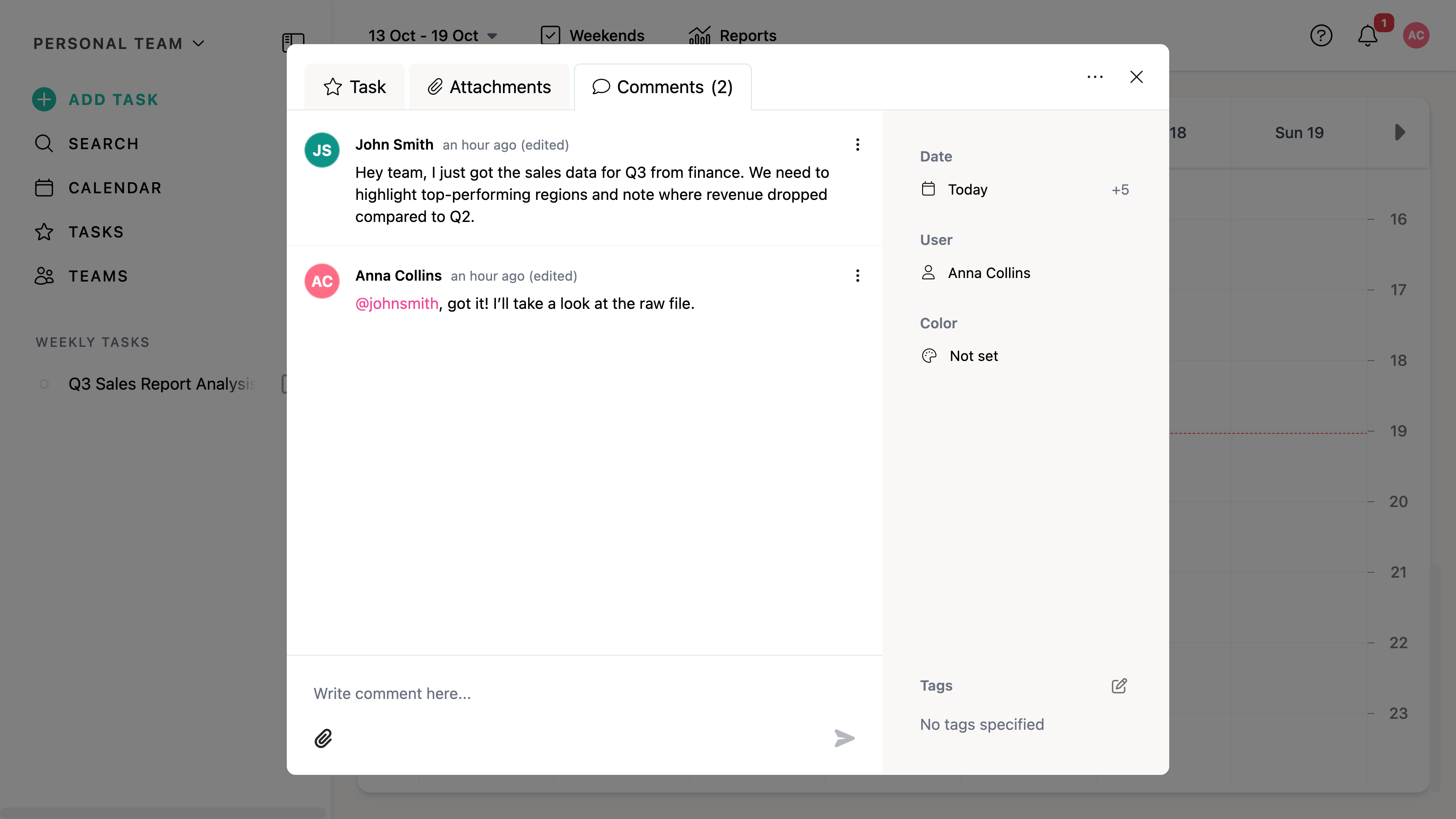 You can continue chatting with AI while updating task contents or chatting with team members - AI always understands whole context of the task and be ready to help you to resolve your task.