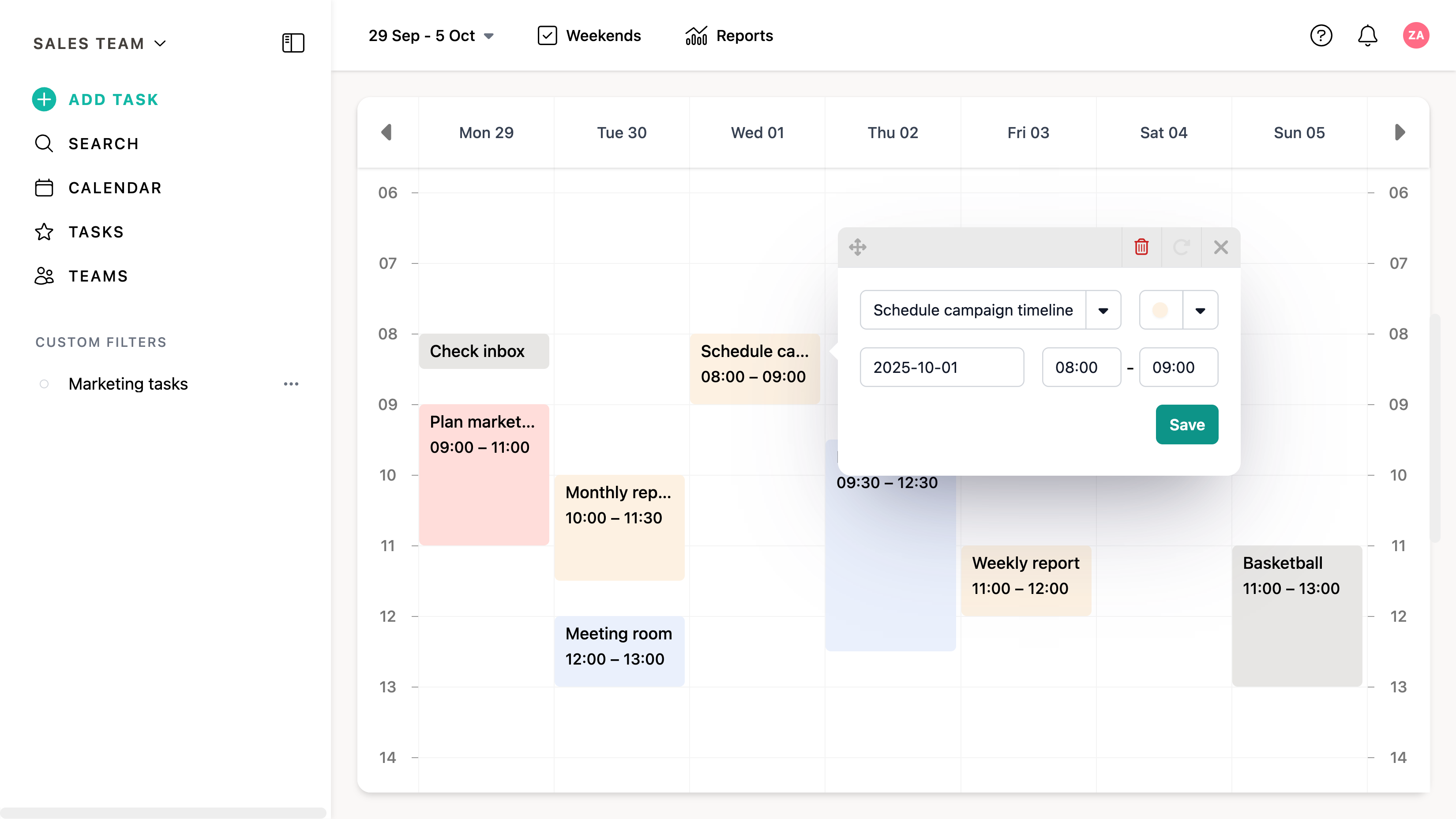 To edit an activity, click on it — a popup will appear. Update the details and click Save to apply the changes.