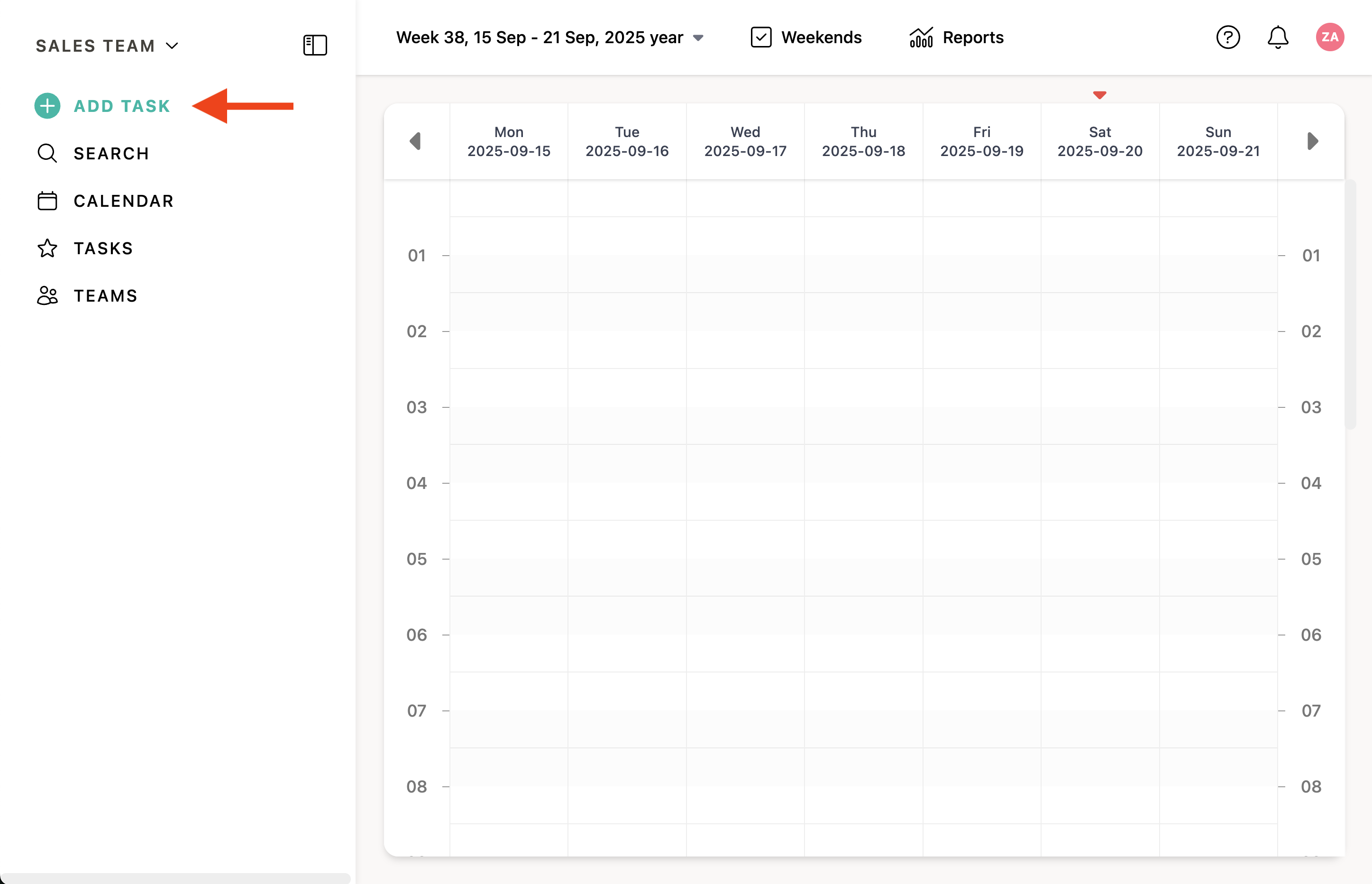 To create a new task, click the Add task button on the sidebar.