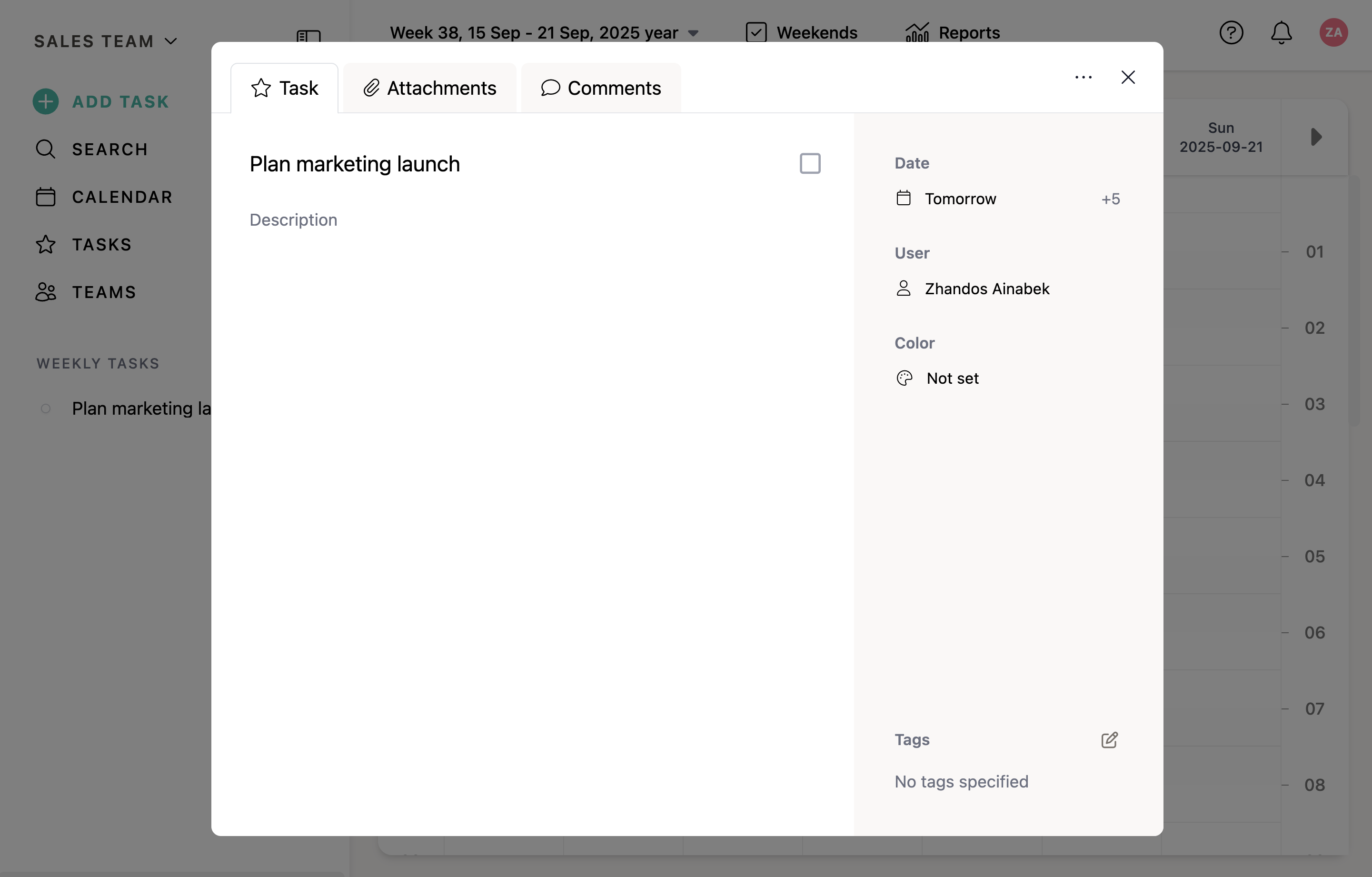 Once saved, the task edit modal will open, where you can continue setting up and customizing your task.