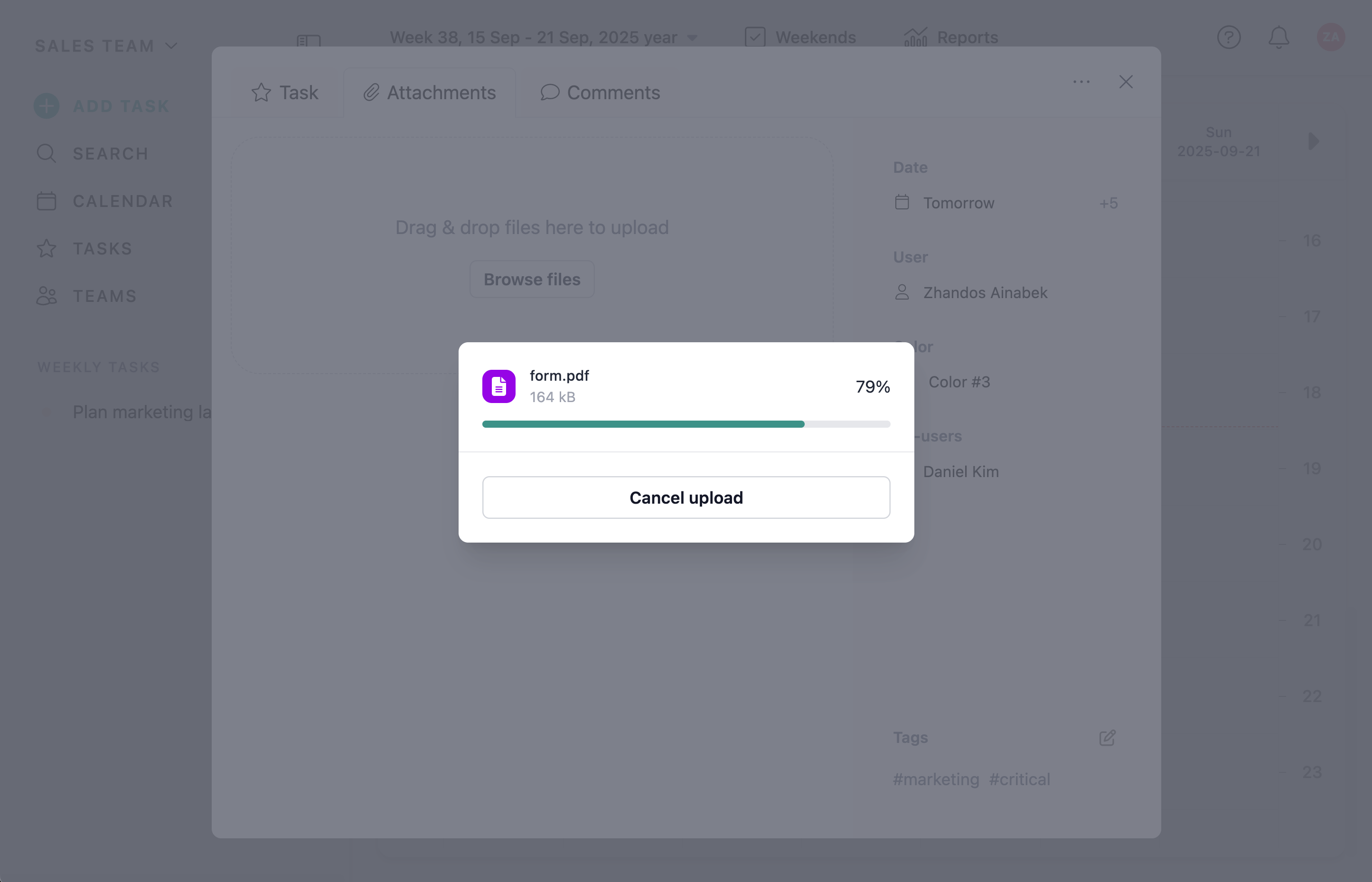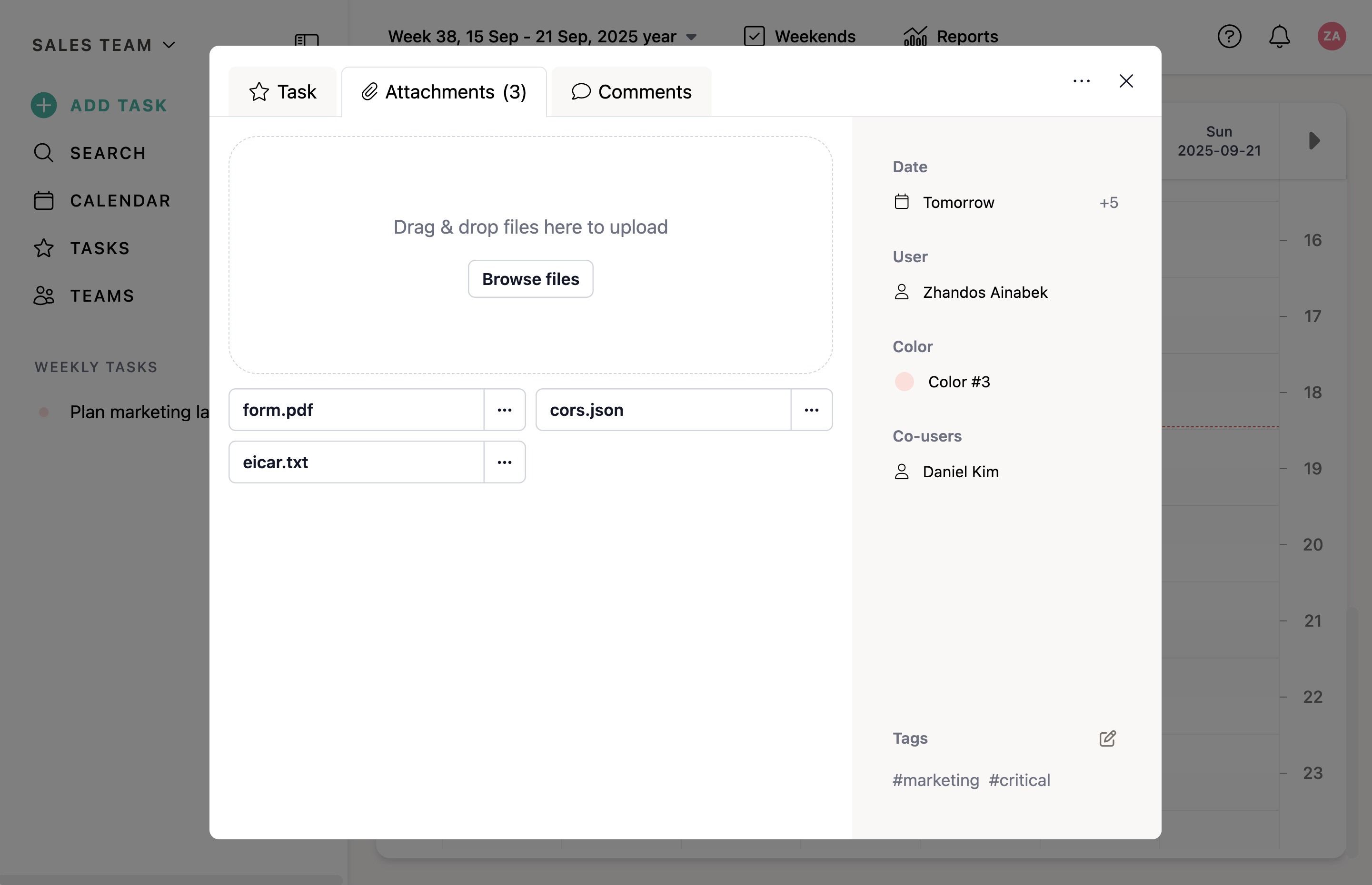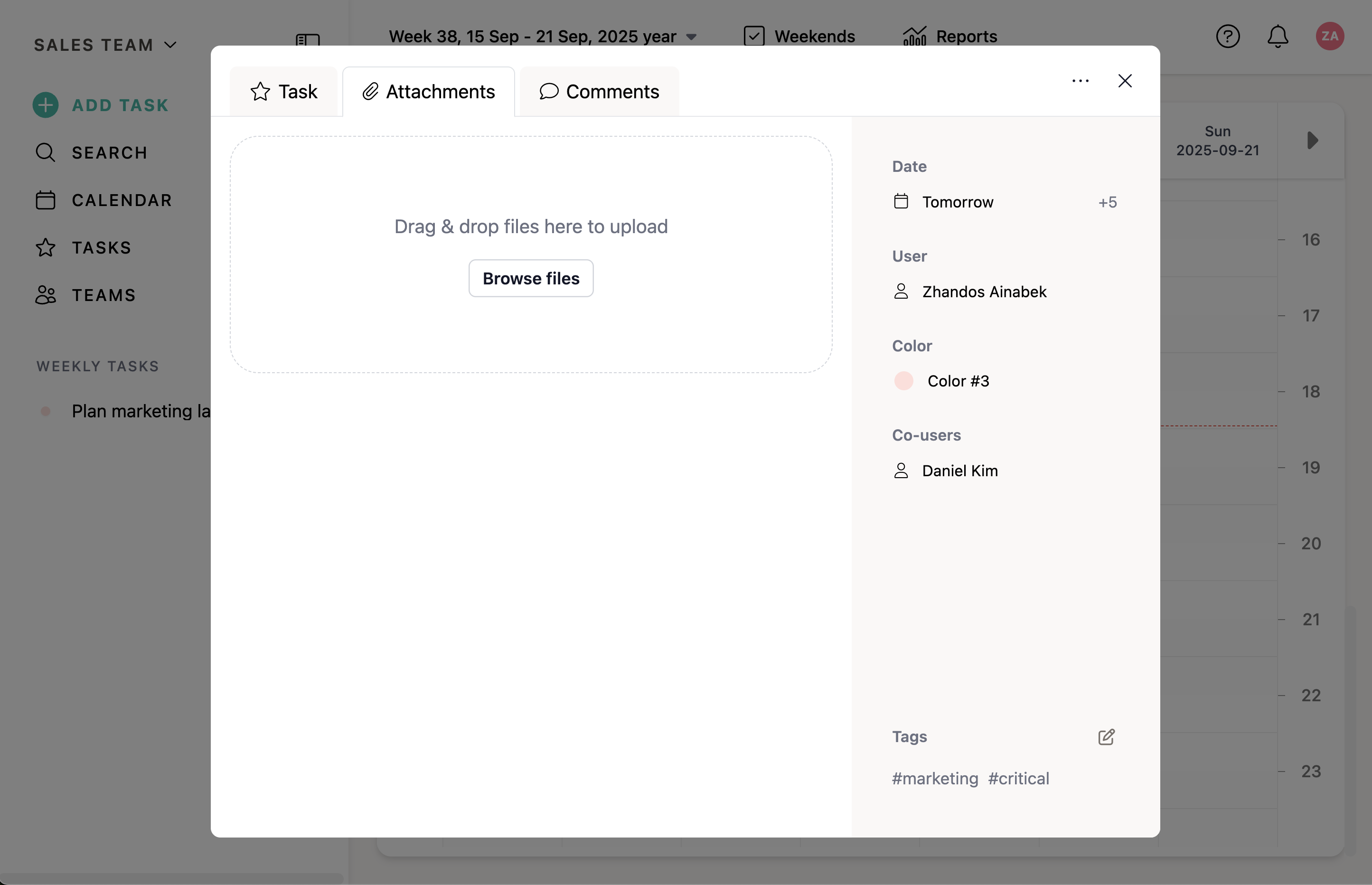 You can manage task attachments in the Attachments tab of the task edit modal.