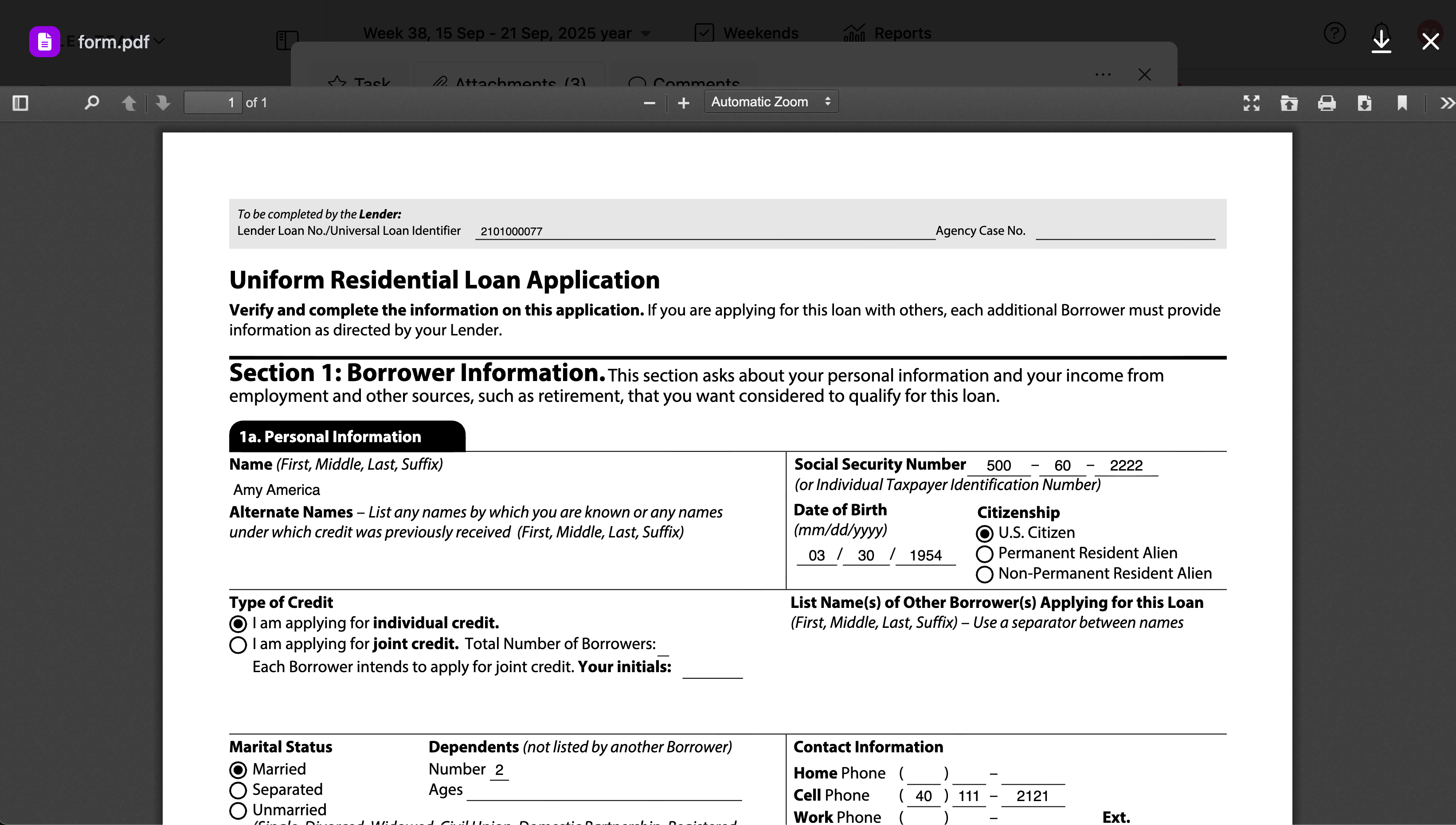 Click on an attachment name to preview it. Supported preview formats are PDF, TXT, images, video, and audio.