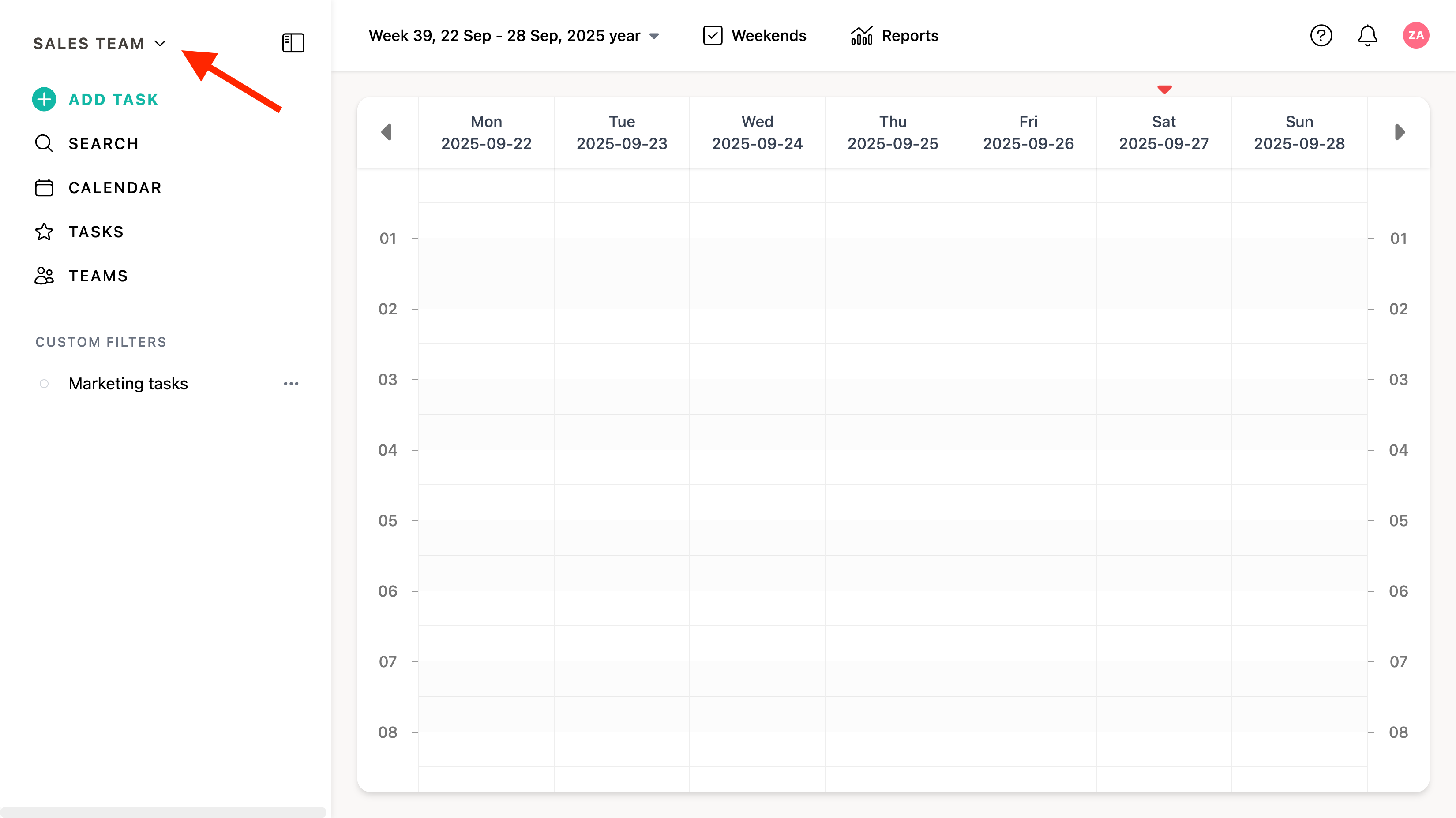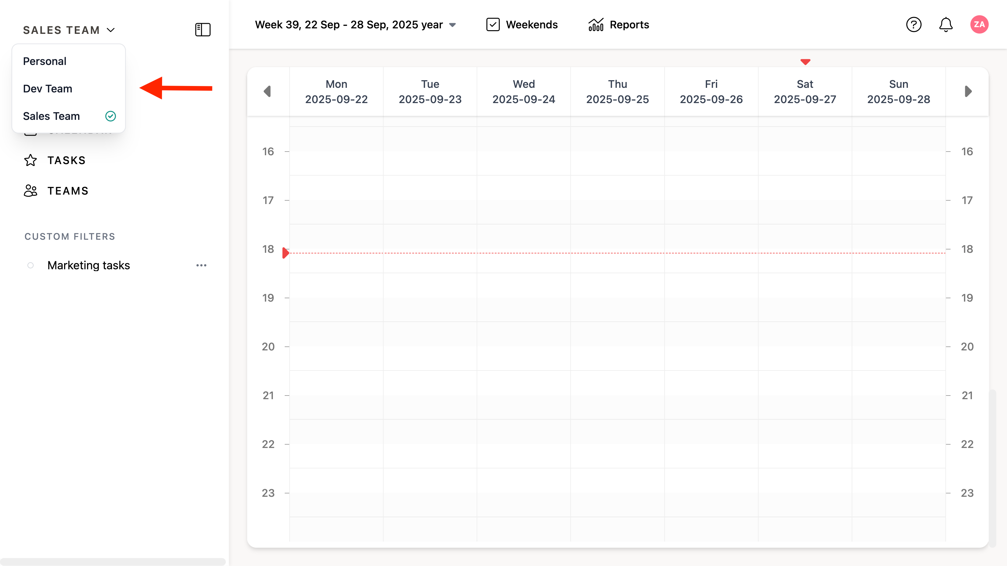Once switched, all actions — such as creating tasks or viewing members — will apply to the active team.