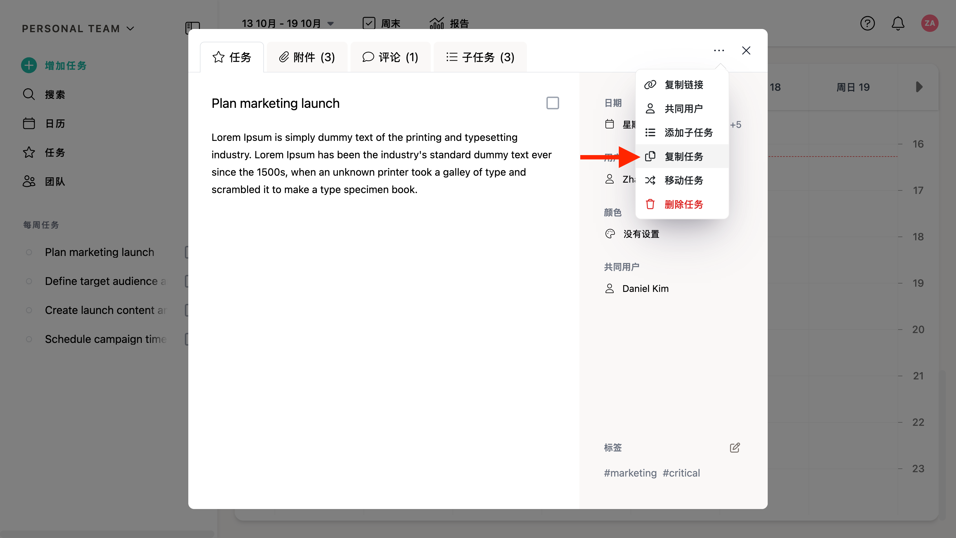 请注意:在复制任务时,附件和评论不会被复制。