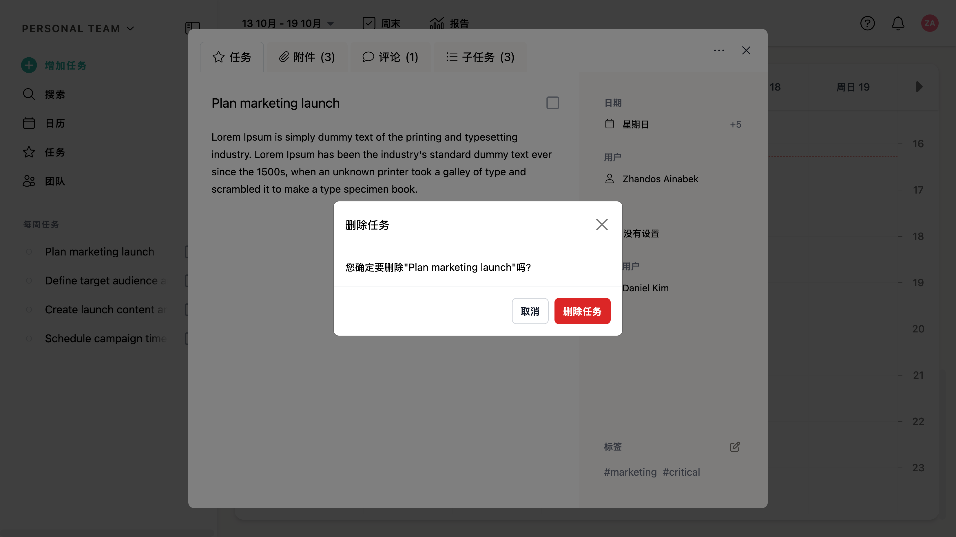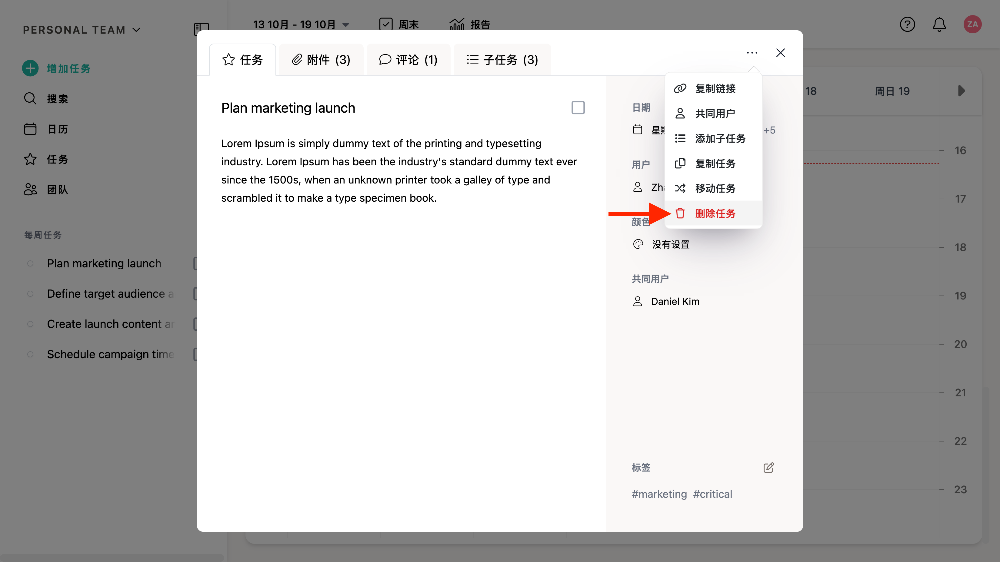 要删除任务,请打开任务编辑窗口右上角的省略号菜单,并选择