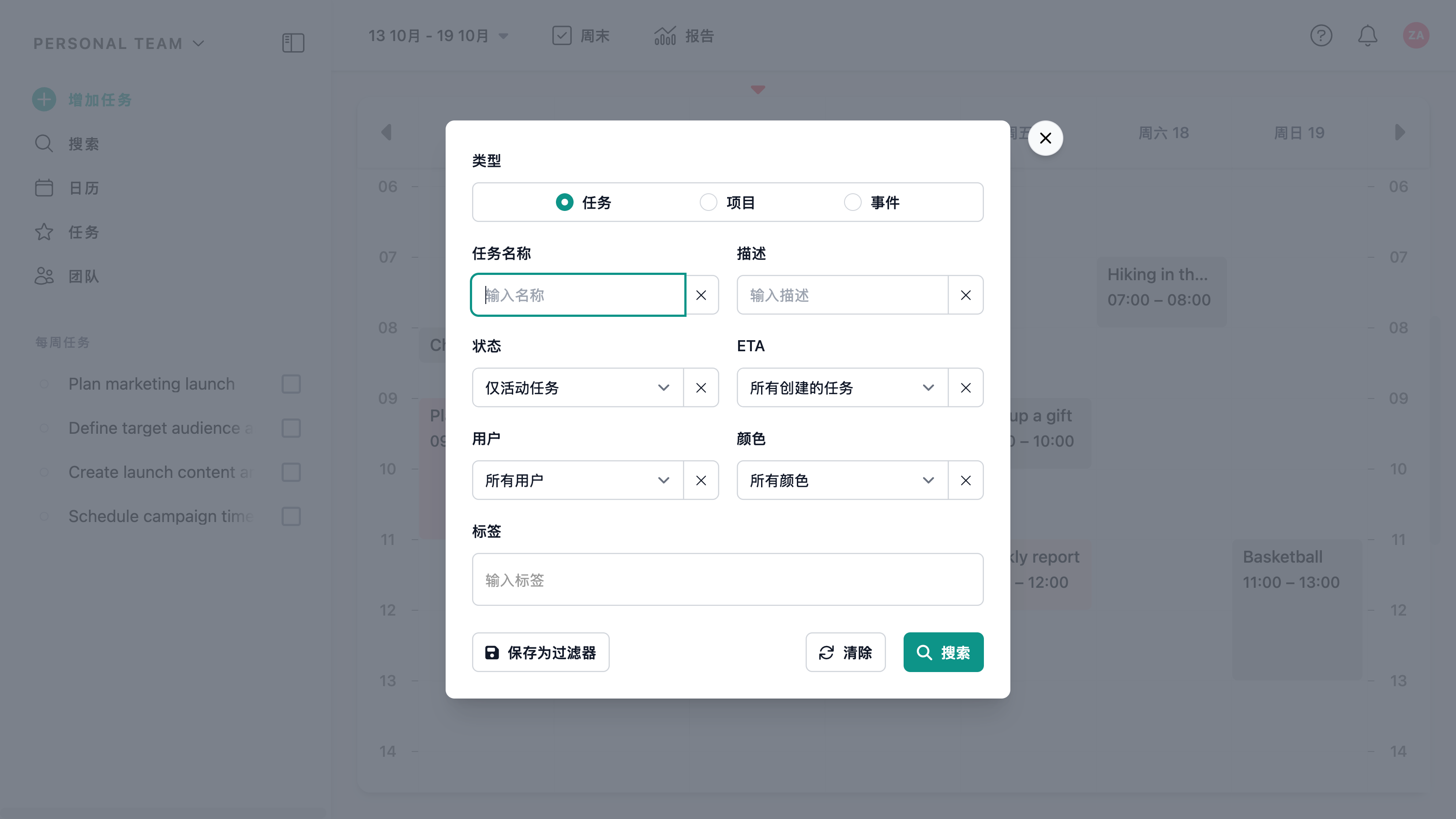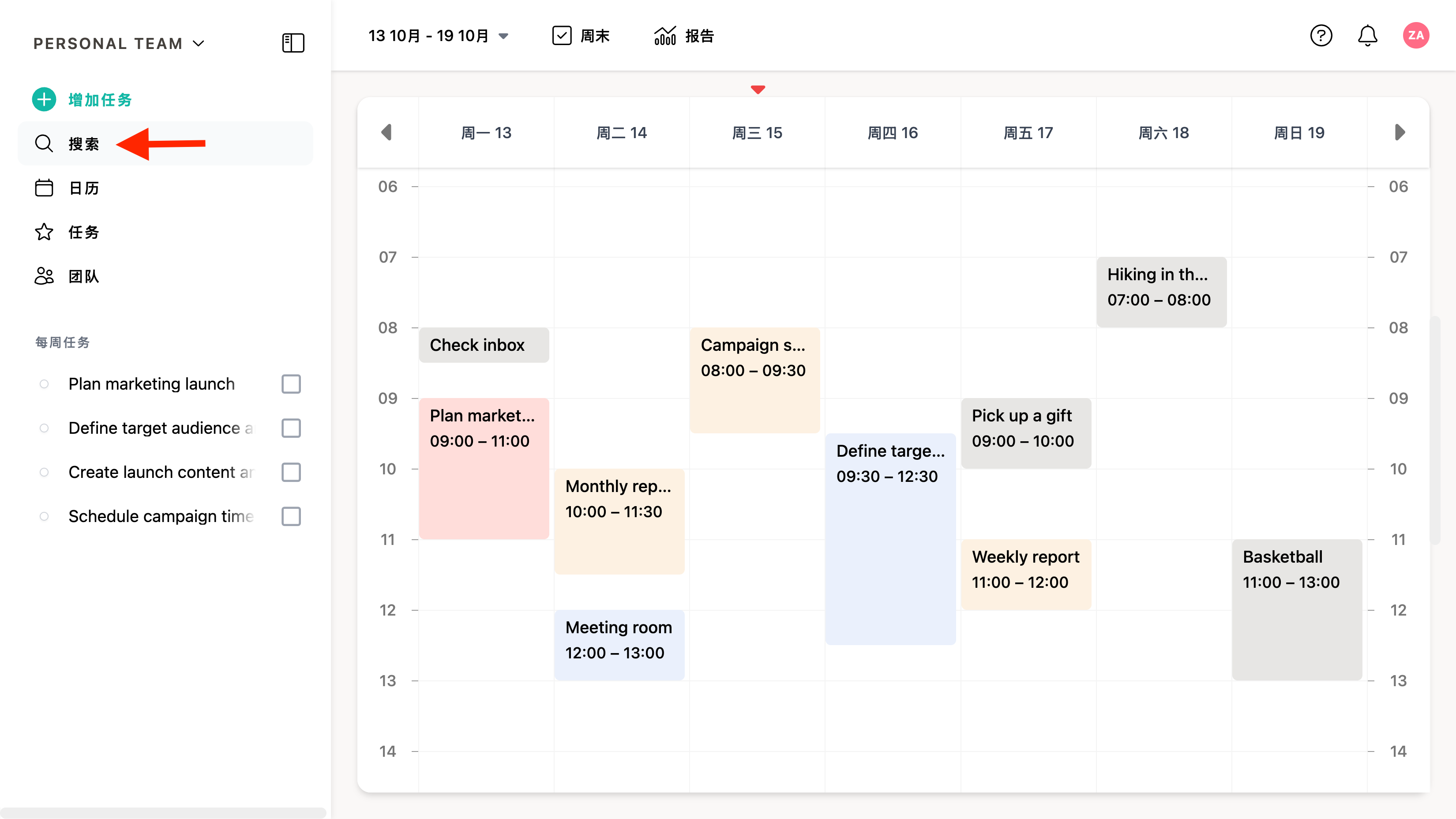 要搜索任务,请点击侧边栏中的 搜索 选项。