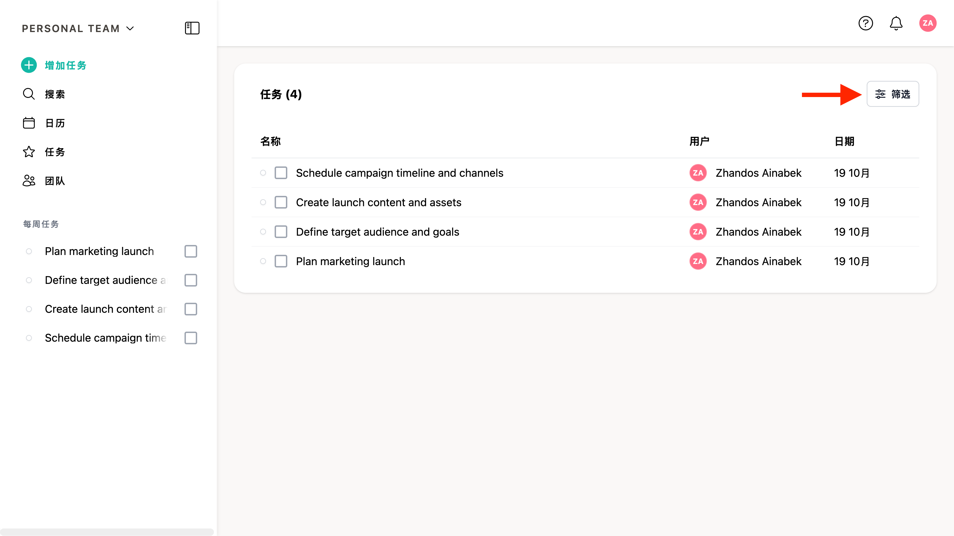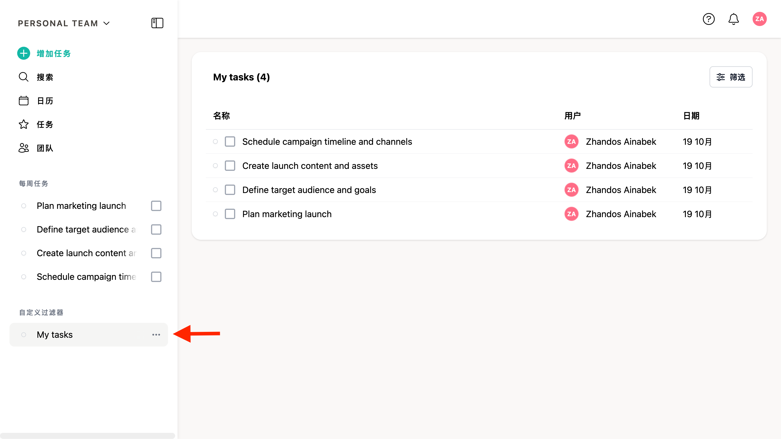 所有已保存的筛选器都会显示在侧边栏中,方便快速访问。